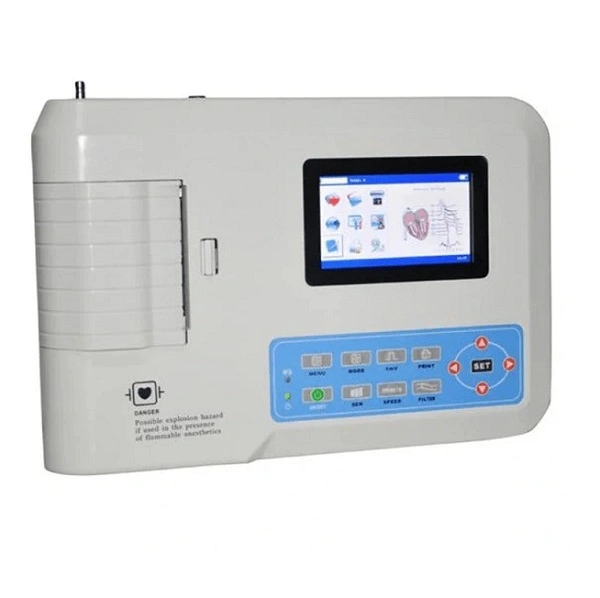 The Contec 300GA ECG Machine is a reliable 3-channel resting ECG machine designed for heart monitoring in hospitals and clinics. This ECG Machine / EKG Machine records three ECG leads at the same time and displays clear waveforms on the screen. It has a built-in thermal printer for fast ECG reports....