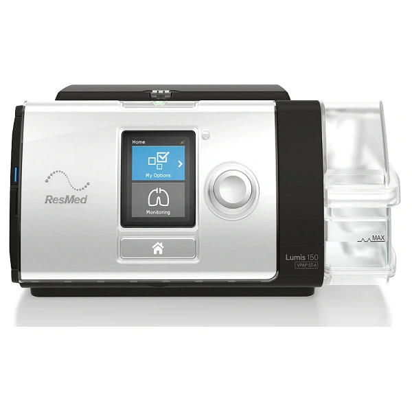 The ResMed Lumis™ 150 VPAP ST is a gentle non-invasive ventilator that supports breathing for people with obstructive or restrictive lung issues, without needing full hospital dependency. It shines with iVAPS mode to keep your lung air levels just right as your needs shift at night, plus a smart bac...